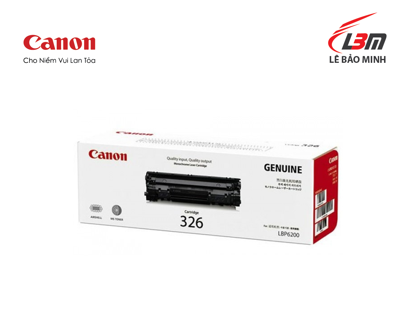 Hộp mực in Canon 326, hay còn gọi là Canon CRG-326, là lựa chọn hoàn hảo để đảm bảo chất lượng bản in tối ưu và hiệu suất hoạt động bền bỉ cho các dòng máy in laser Canon phổ biến. Được sản xuất theo tiêu chuẩn cao nhất của Canon, mực in 326 mang đến sự kết hợp hoàn hảo giữa độ sắc nét, độ tin cậy và khả năng tiết kiệm chi phí cho mọi nhu cầu in ấn văn phòng.