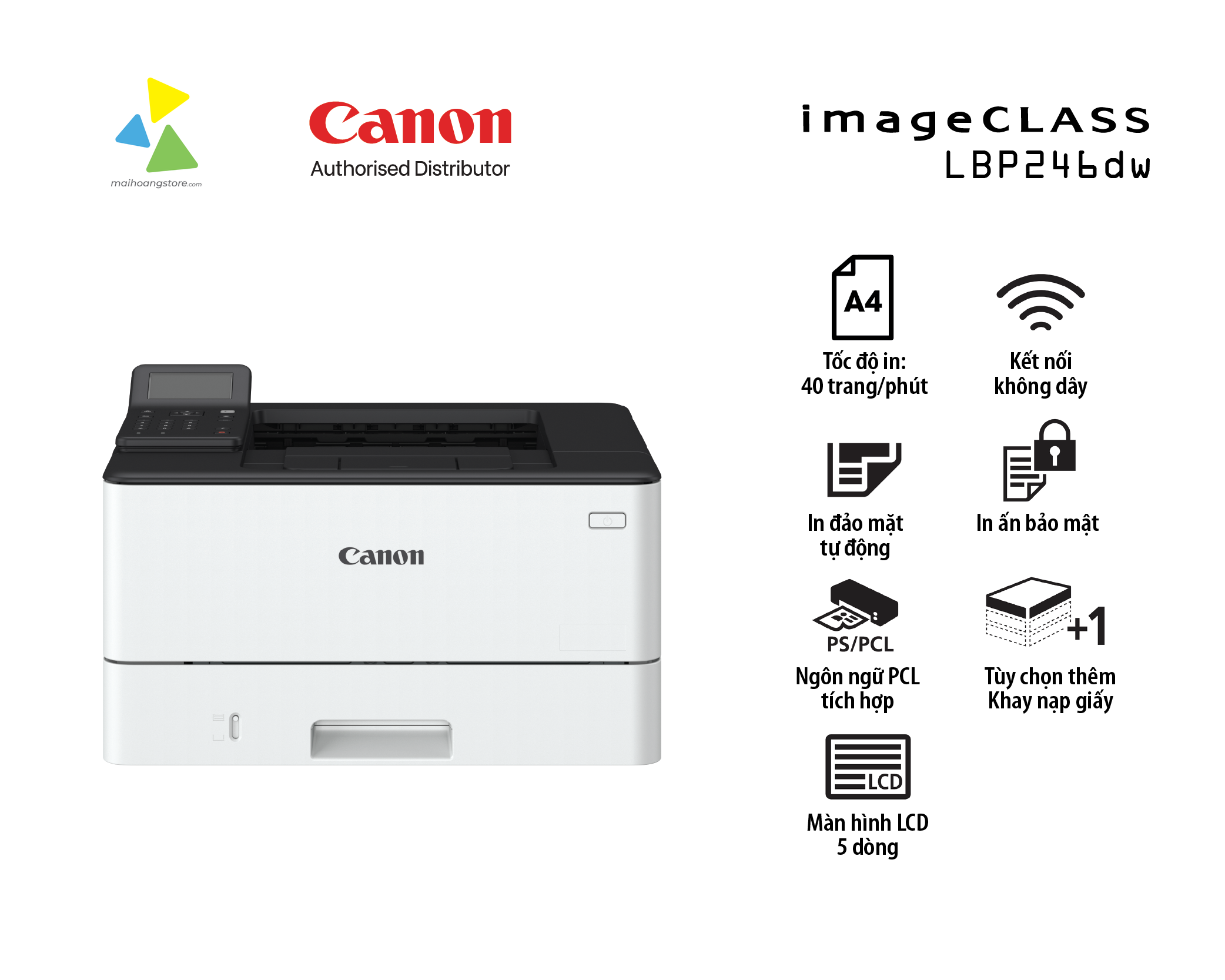 Chọn Canon imageCLASS LBP246dw để trải nghiệm sự kết hợp hoàn hảo giữa tốc độ, độ tin cậy, tính linh hoạt và bảo mật, đưa hiệu suất văn phòng của bạn lên một tầm cao mới.