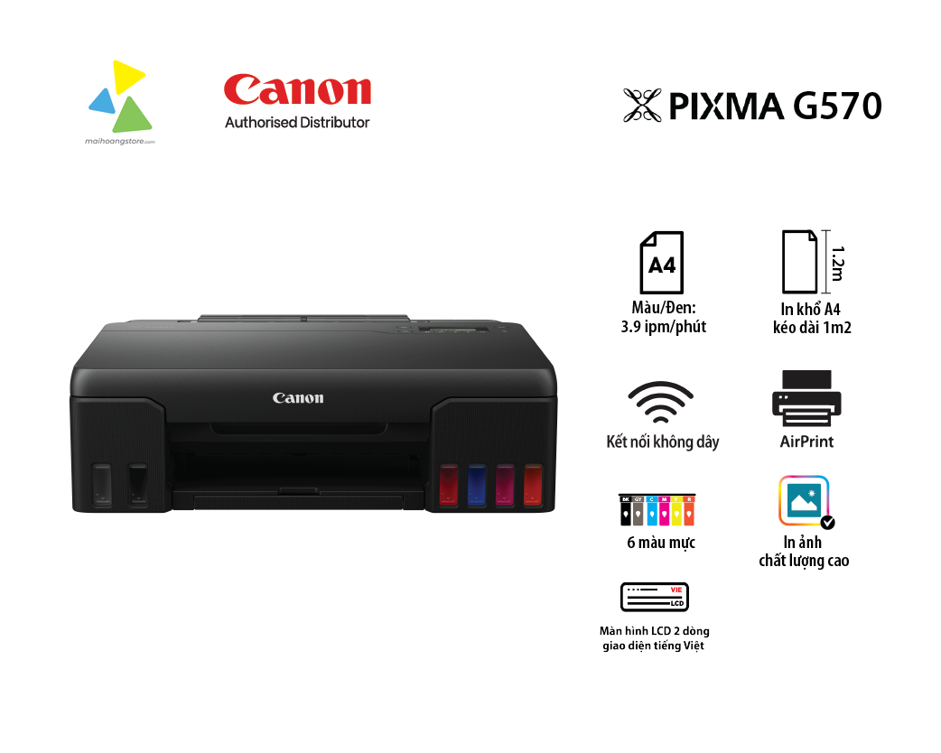 Canon PIXMA G570 là sự kết hợp hoàn hảo giữa chất lượng in ảnh chuyên nghiệp, chi phí vận hành thấp và tính năng linh hoạt. Lựa chọn G570 để nâng tầm trải nghiệm in ấn của bạn!