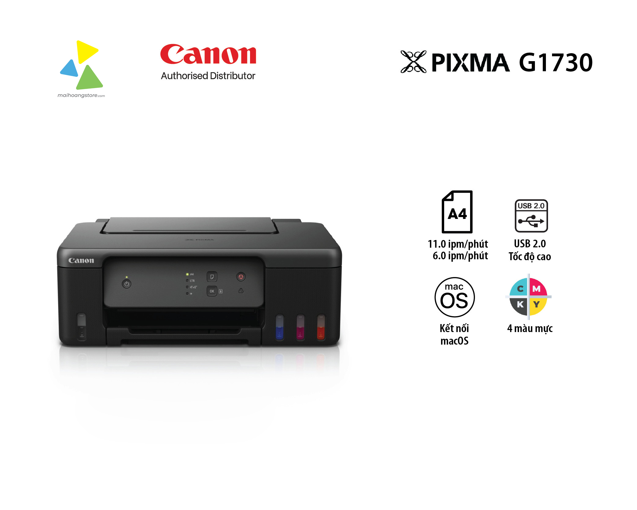 Máy in Canon Pixma G1730 là sự kết hợp hoàn hảo giữa hiệu suất, tiết kiệm và sự tiện lợi. Đầu tư ngay hôm nay để trải nghiệm công nghệ in ấn vượt trội từ Canon!