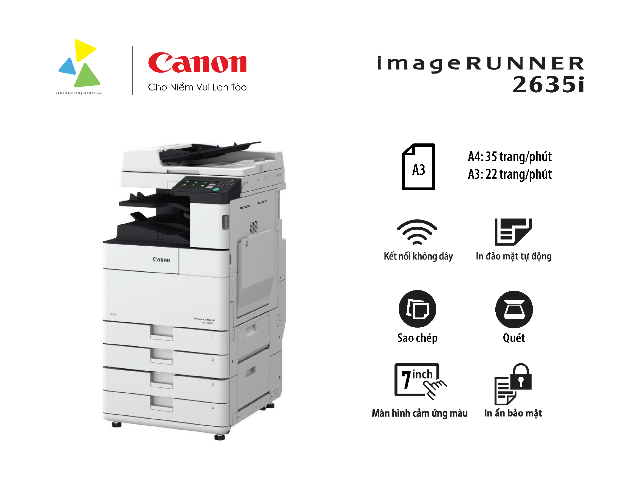 Canon iR2635i không chỉ là một chiếc máy photocopy mà còn là một trung tâm tài liệu thông minh, mang đến sự ổn định, an toàn và hiệu quả cho mọi văn phòng.