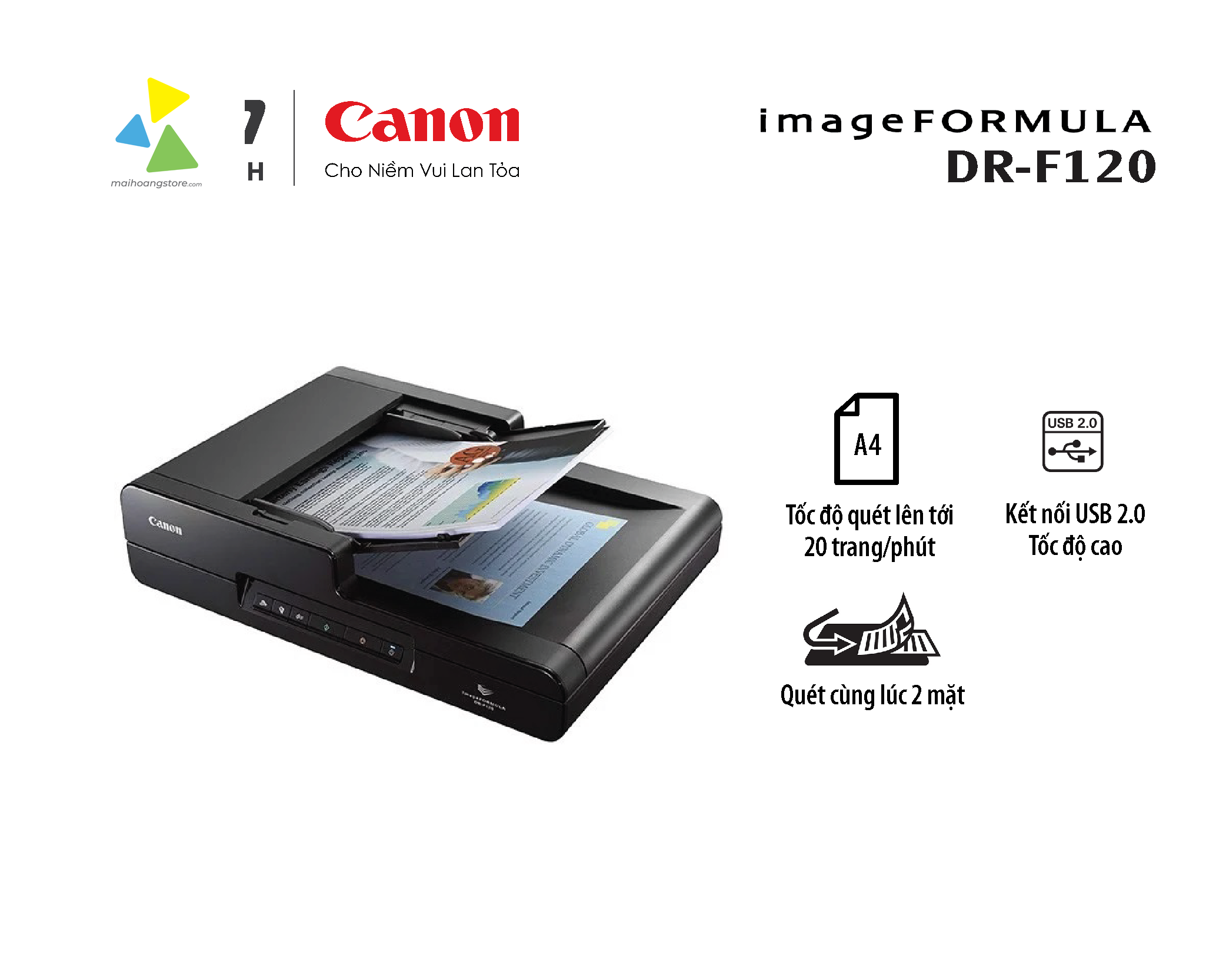 Tốc độ quét tối đa 20 trang/phút (một mặt), 36 trang/phút (2 mặt cùng lúc)
