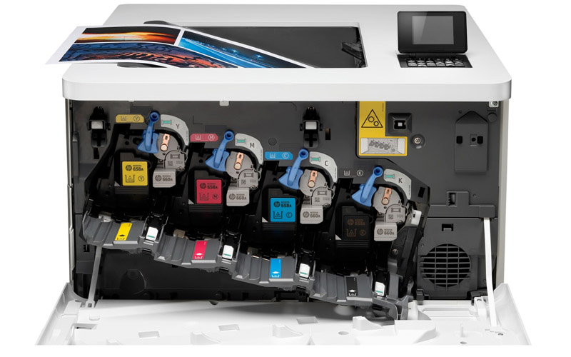 HP Color Laserjet Enterprise M751n là dòng máy in laser màu khổ A3 được thiết kế tinh tế giao tiếp với người dùng bằng màn hình cảm ứng 2.7 Inch giúp người sử dụng thao tác dễ dàng, sử dụng 4 hộp mực màu, với độ phân giải 600dbi x 600dbi cho ra những bản màu đẹp, sắc nét với chi phí bản in thấp.